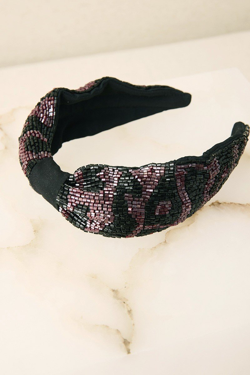 Diademas acolchadas con cuentas bordadas y estampado animal. Un toque artesanal y sofisticado para realzar cualquier peinado.