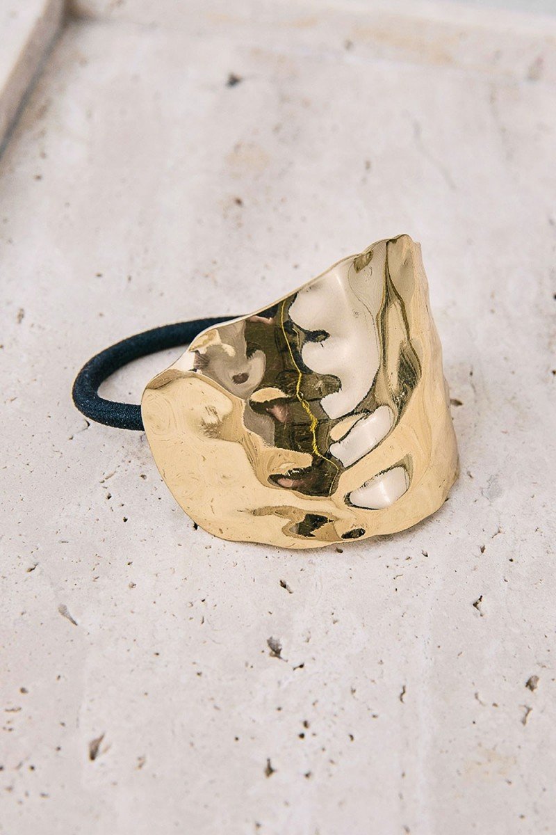 Gomas de pelo con aplique metálico dorado o plateado. Recoge el cabello con estilo y efecto joya.