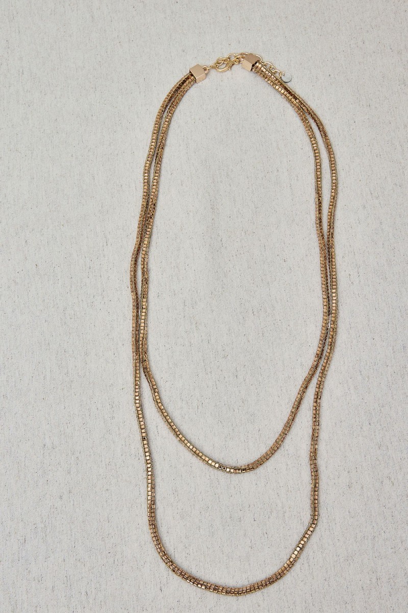 Collar largo de dos vueltas confeccionado con cuentas de cristal y detalles metálicos. Su estilo minimalista y elegante lo convierte en una pieza versátil para realzar cualquier look.