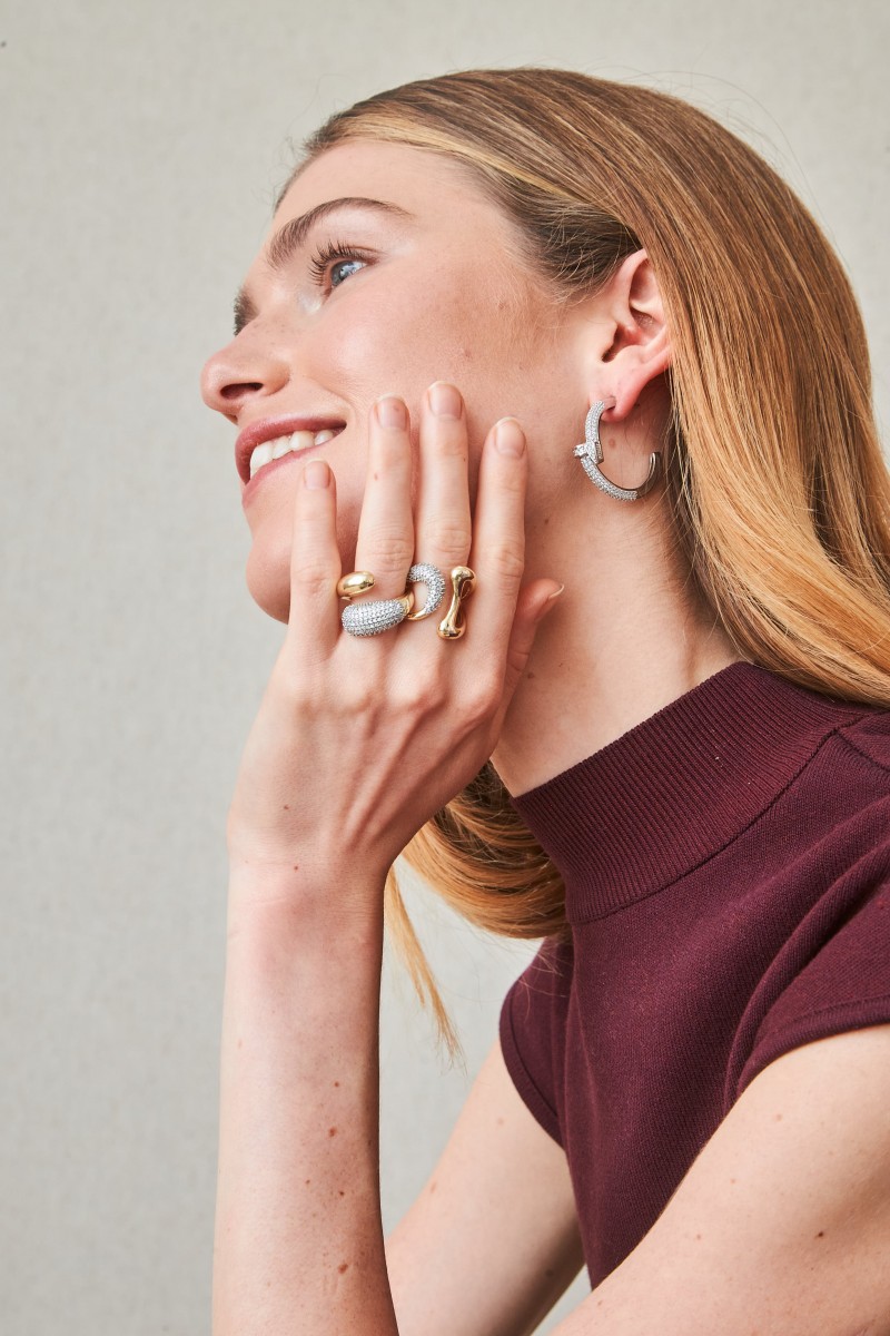Aros medianos con silueta de tornillo y cristales engastados. Una pieza versátil con un toque de originalidad.