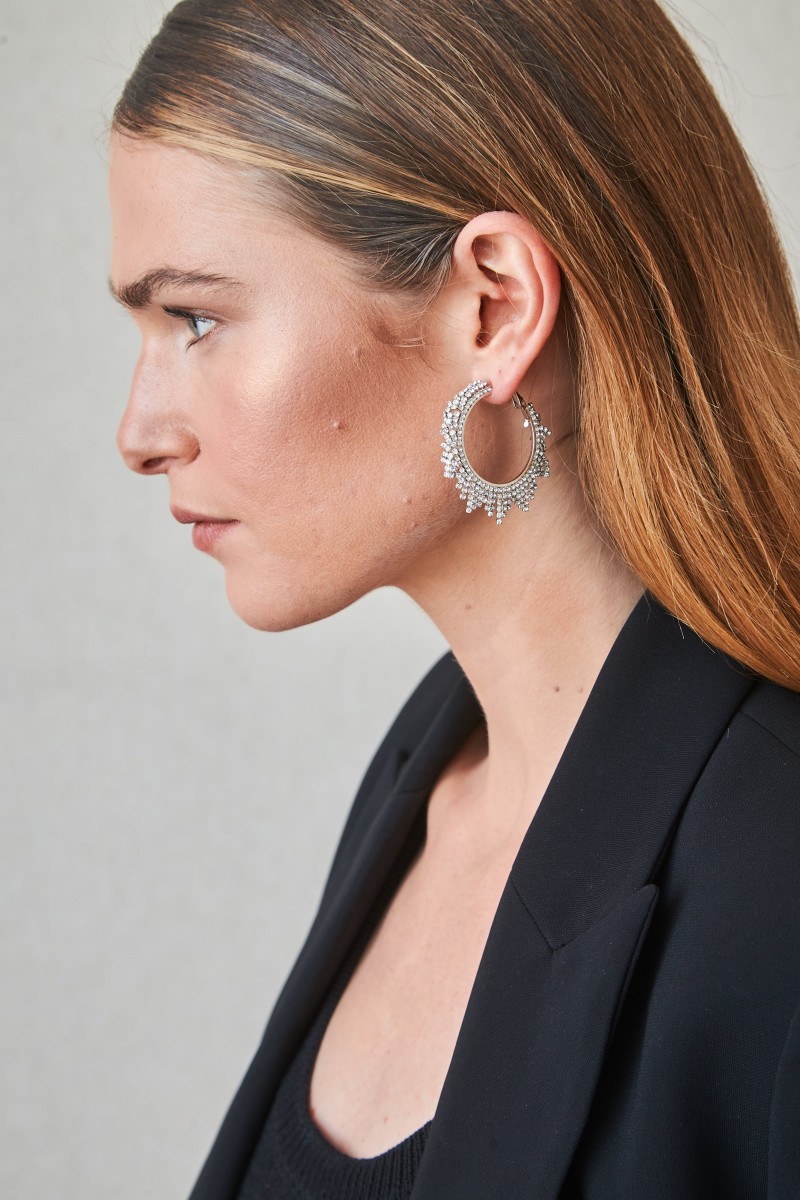 Aros grandes con cristales engastados que dibujan un diseño radiante. Ideales para aportar luz y estilo.
