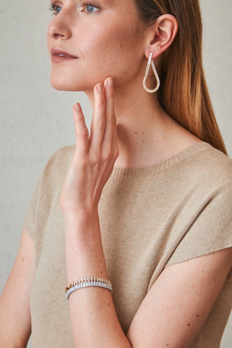 Pendientes lágrima con estructura metálica cubierta de cristales. Un diseño clásico con brillo delicado y femenino